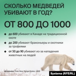 После того, как предложение США отклонили в первый раз в 2010 году, из Канады было экспортировано около трех тысяч разных трофеев, отмеченных как "шкура", "когти" или "зубы". В WWF утверждают: лучшее, что можно сделать для белого медведя – это победить глобальное потепление. "Сегодня совершенно ясно, что мы имеем влияющие на белого медведя климатические эффекты, с которыми мы ничего не можем сделать. <...> Но если добавить охоту, вы получаете двойной отрицательный эффект", – объясняет авторам расследования известный исследователь белых медведей Тор Ларсен.